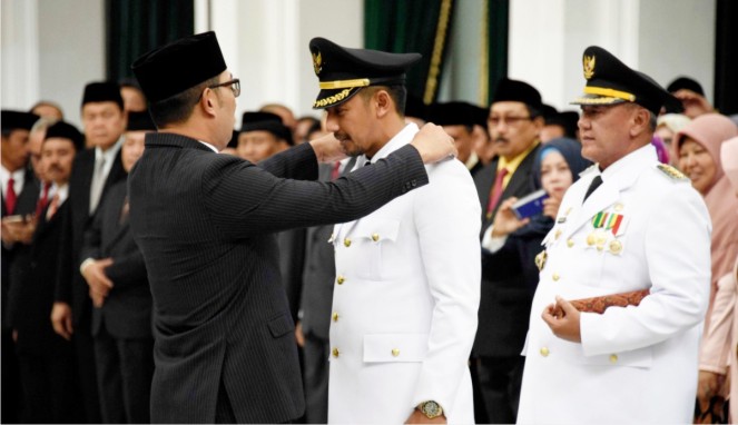 “Saya melantik bupati-wakil Bupati Kuningan bersama walikota-wakil walikota Banjar. Ini pilihan rakyat yang harus dihormati. Setelah dilantik, bayar kepercayaan rakyat dengan amanah, istiqomah dan bawalah ke perubahan,” kata Kang Emil, sapaan Gubernur setelah melantik dua kepala daerah untuk masa jabatan 2018-2023 di Gedung Sate Bandung, (4/12/2018).