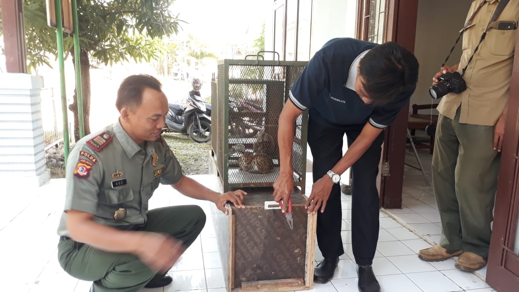 “Hewan ini berusia sekitar dua bulan yang kami tangkap dengan cara diberi jebakan. Kami mendapat laporan kalau kucing ini sering meresahkan warga. Mereka sering memangsa ayam milik warga,” jelas AKP Ade.