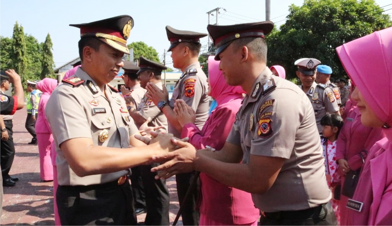 UPACARA Korp Raport Kenaikan Pangkat TMT 01 Juli 2019 dan PNS Polri TMT 01 April 2019 Tingkat Polres Majalengka, Kapolres Majalengka AKBP Mariyono, S.I.K., M.Si. memimpin langsung Upacara Korp Raport kenaikan pangkat kepada personel Polres Majalengka, di halaman Mapolres Majalengka Jl. K.H. Abdul Halim No. 518 Majalengka, Senin (01/07).
