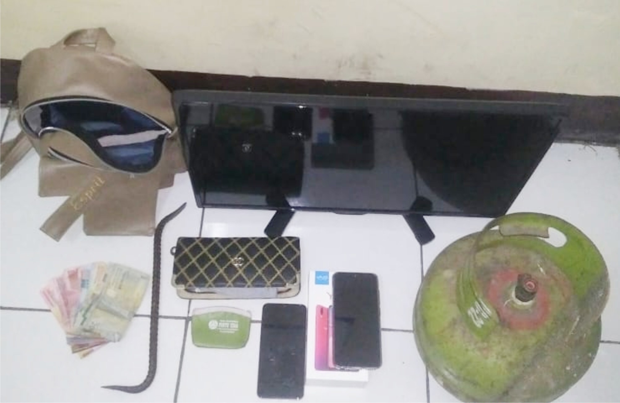 Tersangka masuk kedalam mess BPR melalui pintu belakang dengan cara merusak selot pintu dan mendobraknya serta mengasak barang-barang milik Korban tersimpan dalam tas warna cokelat yang berisikan uang tunai sebesar Rp.3.500.000,- serta membawa satu unit TV merk Sharp, sebuah Handpone (HP) merk Vivo dan tabung gas yang tersimpan di dapur mess.