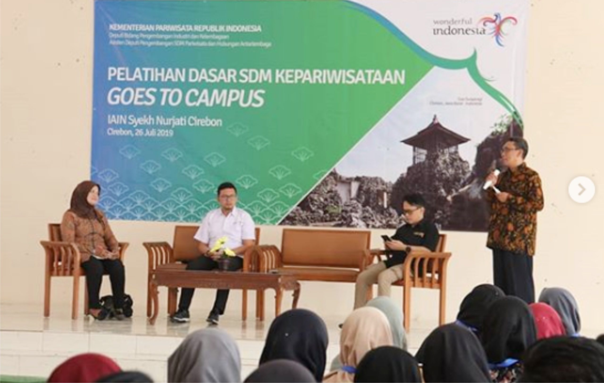 Kasubid Pengembangan SDM Kepariwisataan Kementerian Pariwisata (Kemenpar) Republik Indonesia, Alfin Merancia menjelaskan, mahasiswa merupakan kaum milenial yang memiliki potensi untuk dapat mempromosikan terkait pariwisata di suatu daerah melalui media sosial yang mereka miliki.
