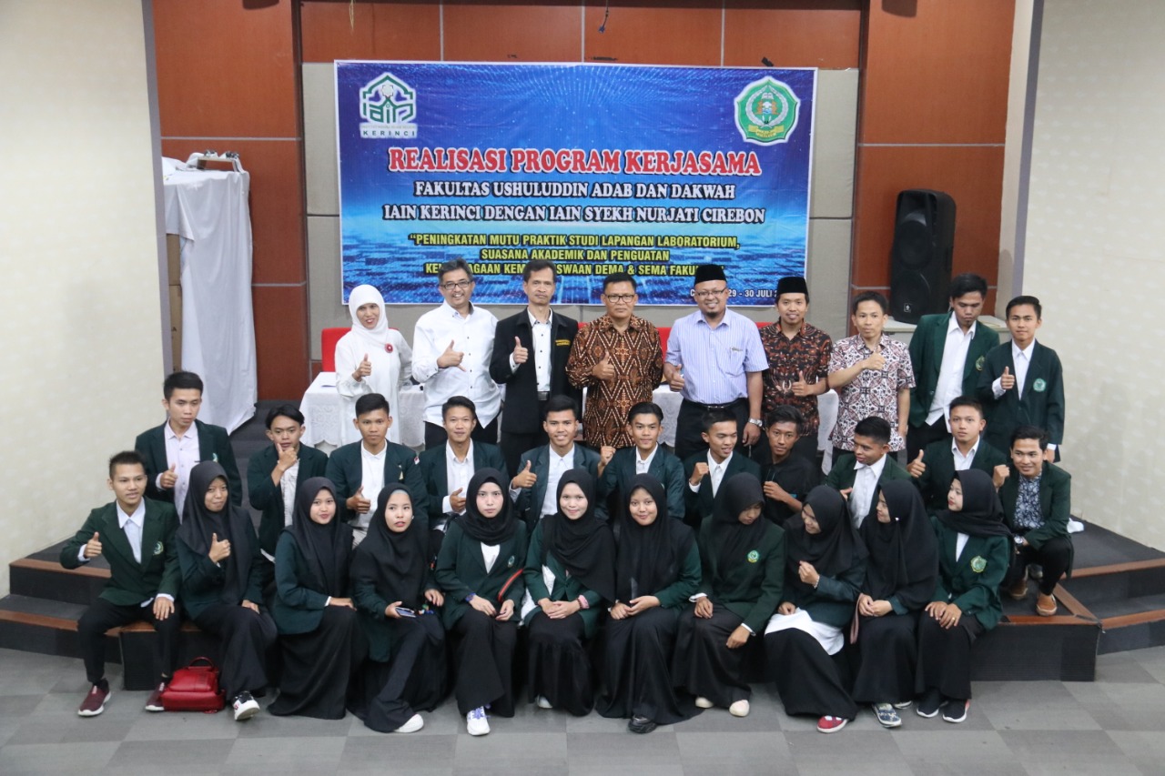CIREBON, SC- Fakultas Ushuluddin Adab dan Dakwah (FUAD) Institut Agama Islam Negeri (IAIN) Syekh Nurjati Cirebon dan IAIN Kerinci Jambi merealisasikan program kerjasama akademik di bidang tri dharma perguruan tinggi, Senin (29/7/2019).