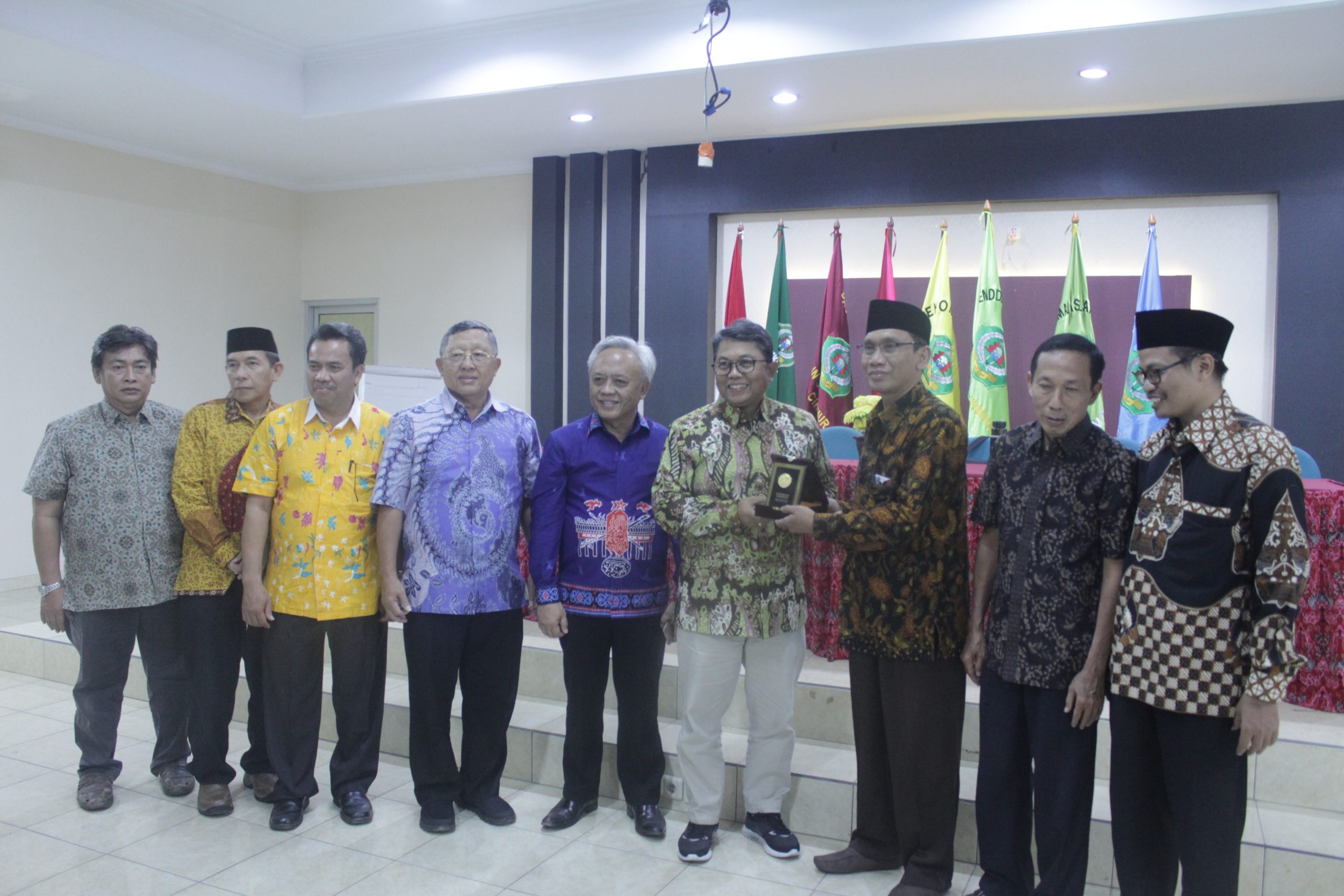 CIREBON, SC- Sejumlah pejabat dan jajaran civitas akademik Institut Agama Islam Negeri (IAIN) Syekh Nurjati Cirebon menyambut kedatangan rombongan Universitas Indonesia (UI) di gedung pascasarjana kampus setempat, Jumat (2/8/2019).