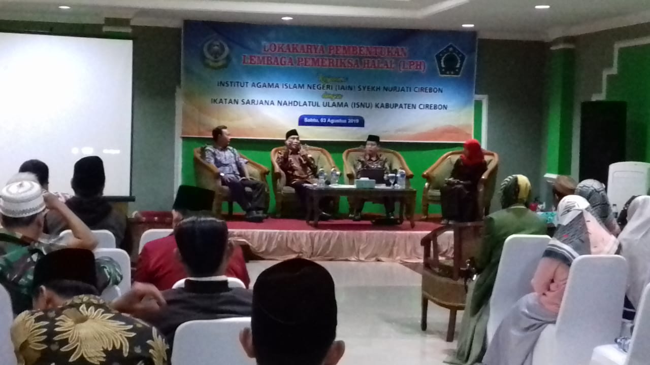 CIREBON, SC- Institut Agama Islam Negeri (IAIN) Syekh Nurjati Cirebon dipilih menjadi Lembaga Pemeriksa Halal (LPH). Pembahsan pembentukan LPH tersebut dilangsungkan dalam acara lokakarya bersama Ikatan Sarjana Nahdlatul Ulama (ISNU) Kabupaten Cirebon di Hotel Zamrud, Kota Cirebon, Sabtu (3/8/2019).