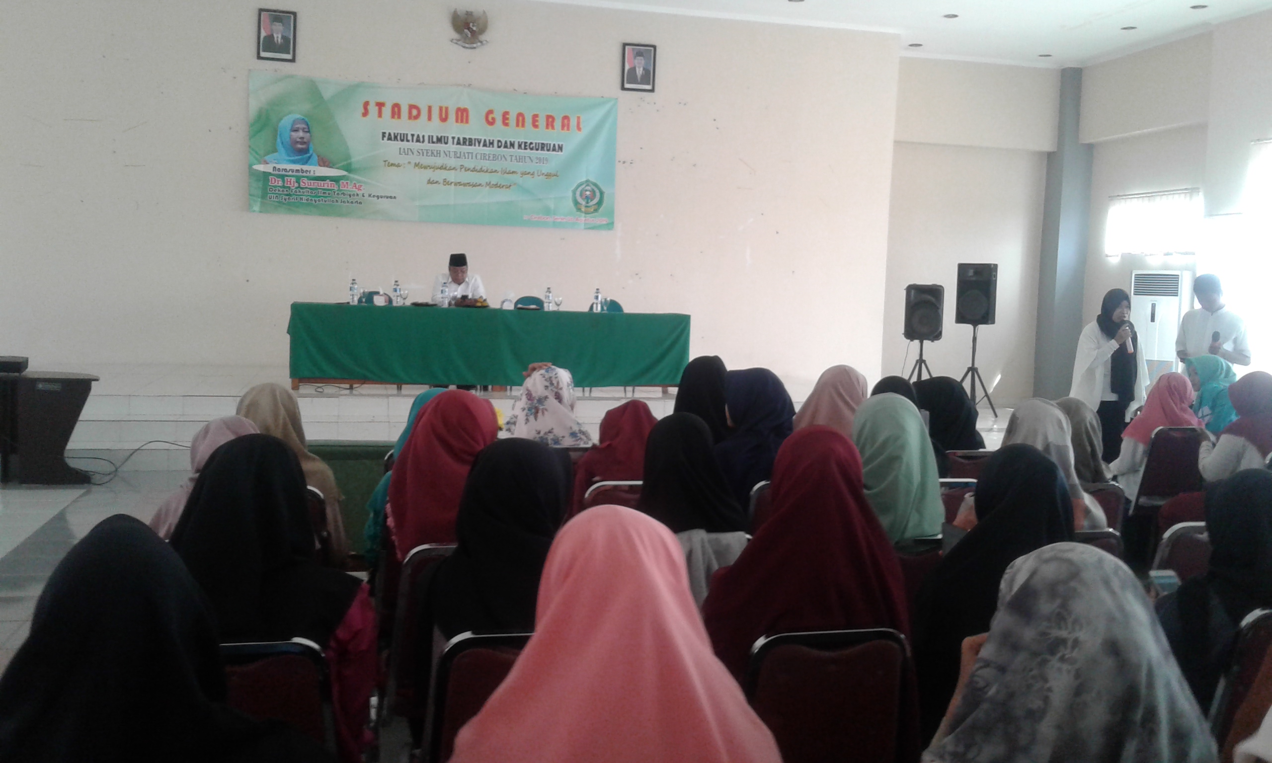 CIREBON, SC- Fakultas Ilmu Tarbiyah dan Keguruan (FITK) Institut Agama Islam Negeri (IAIN) Syekh Nurjati Ciebon menggelar acara stadium general di lantai 3 gedung pascasarjana kampus setempat, Senin (26/8/2019). Acara yang diikuti pimpinan fakultas, jurusan, tenaga kependidikan, dan 300 mahasiswa di lingkungan kampus setempat ini membahas tentang pemahaman pendidikan islam yang unggul dan moderat.