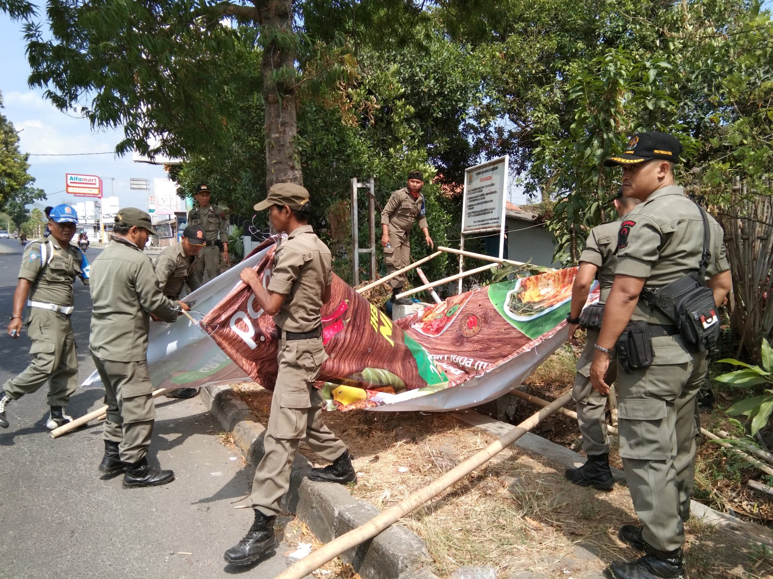 Plt Kasi Ketertiban Umum (Tibum) Satpol PP Kabupaten Cirebon, Aep Saifudin, menjelaskan, penertiban dilakukan sesuai tugas dan fungsi Satpol PP berdasarkan Perda nomor 7 tahun 2015 tentang Ketertiban Umum. “Kita tertibkan baliho, spanduk dan lainnya yang dibahu jalan maupun yang mengganggu fasilitas umum,” ujar Aep saat ditemui di wilayah Kenanga memimpin penertiban tersebut.