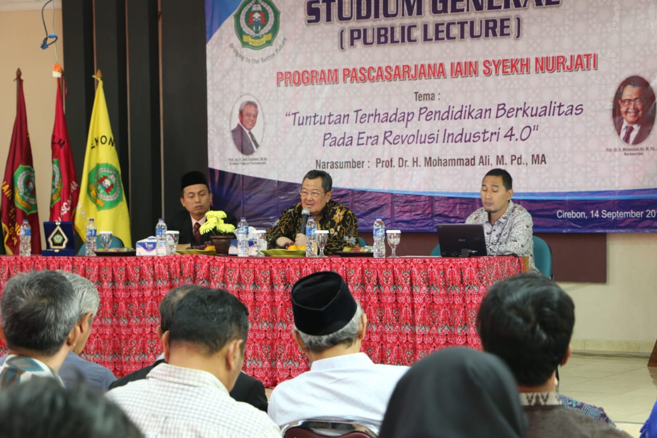 CIREBON, SC- Pascasarjana Instut Agama Islam Negeri (IAIN) Syekh Nurjati Cirebon menyelenggarakan kegiatan Stadium General bertema ‘Tuntutan Terhadap Pendidikan Berkualitas Pada Era Revolusi Industri 4.0’ di lantai 3 gedung kampus setempat, Sabtu (14/9/2019).