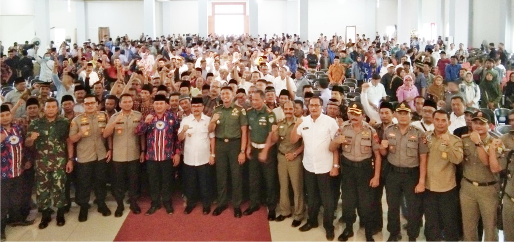 SUMBER, SC – Ratusan Calon Kuwu (Calwu) dari 177 Desa di Kabupaten Cirebon memadati Hall Universitas Muhammadiyah Cirebon (UMC), Watubelah, Sumber, Cirebon, untuk mengikuti Deklarasi Damai Pemilihan Kuwu (Pilwu) serentak di Kabupaten Cirebon dan mendukung pelantikan Presiden dan Wakil Presiden tahun 2019, Rabu (16/10/2019). Kegiatan tersebut dihadiri Bupati Cirebon, Imron Rosyadi dan pejabat Forum Komunikasi Pimpinan Daerah (Forkopimda) serta para panitia Pilwu dan pejabat di dinas terkait lainnya.