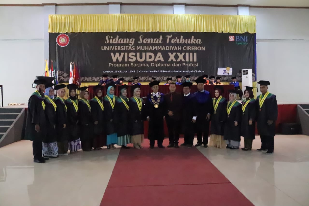 CIREBON, SC- Universitas Muhammadiyah Cirebon (UMC) menggelar kegiatan Pelantikan Wisuda dan Diploma XXIII dalam Sidang Senat Terbuka yang dilaksanakan di Convention Hall kampus setempat Jalan Fatahillah, Kelurahan Watubelah, Kecamatan Sumber, Kabupaten Cirebon, Sabtu (26/10/2019).
