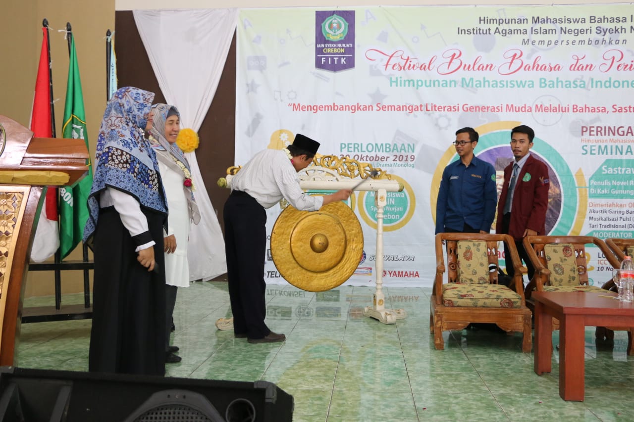CIREBON, SC- Himpunan Mahasiswa Bahasa Indonesia (HIMABI) Institut Agama Islam Negeri (IAIN) Syekh Nurjati Cirebon menyelenggarakan Festival Bulan Bahasa Indonesia dalam rangka memperingati hari lahir (Harlah) himpunan mahasiswa ini dan Jurusan Bahasa Indonesia ke 4 di gedung ICC kampus setempat, Senin (28/10/2019).