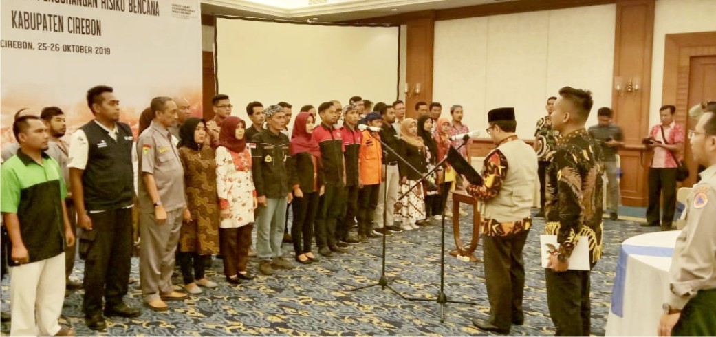 BUPATI Cirebon, H Imron Rosyadi resmi mengukuhkan terbentuknya Forum Pengurangan Risiko Bencana (FPRB) Kabupaten Cirebon, di Hotel Santika Kota Cirebon pada Jumat malam (25/10/2019).
