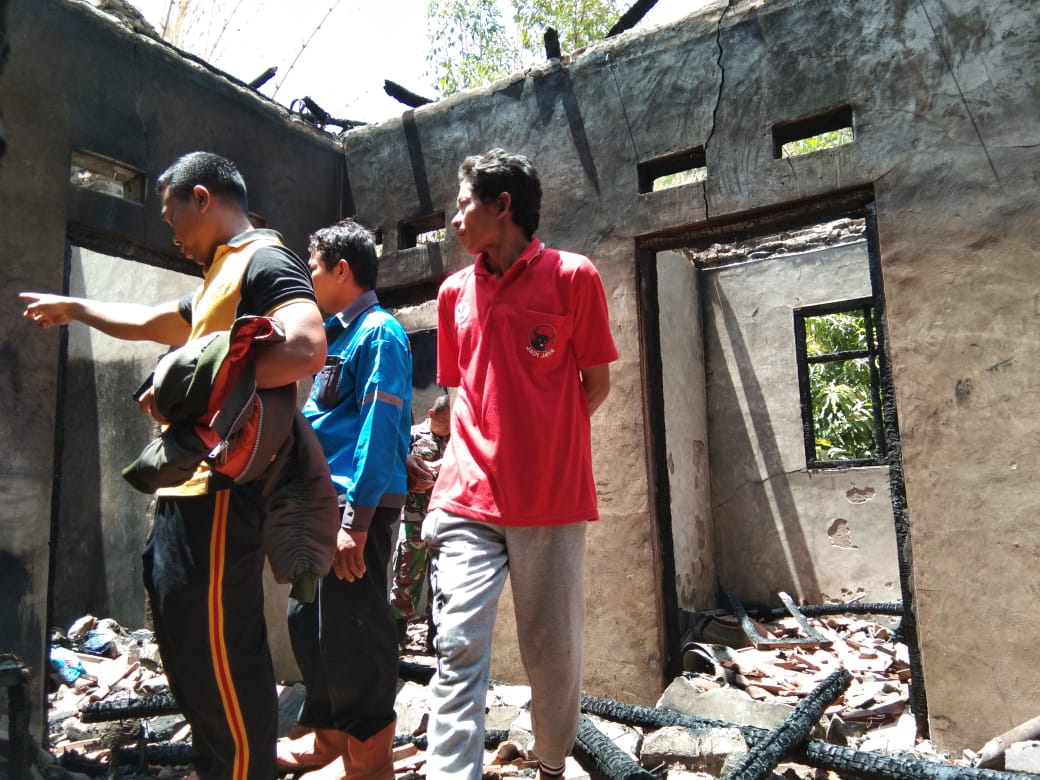 DEPOK, SC- Sebuah rumah milik warga Blok Cibogo Lor RT 003 RW 004 Desa Warujaya, Kecamatan Depok, Kabupaten Cirebon, Pani (33) ludes dilalap api, Sabtu pagi (16/11) sekira pukul 09.00 WIB. Kondisi cuaca panas membuat api dengan cepat membakar atap rumah dan menghabiskan seluruh isi rumah.