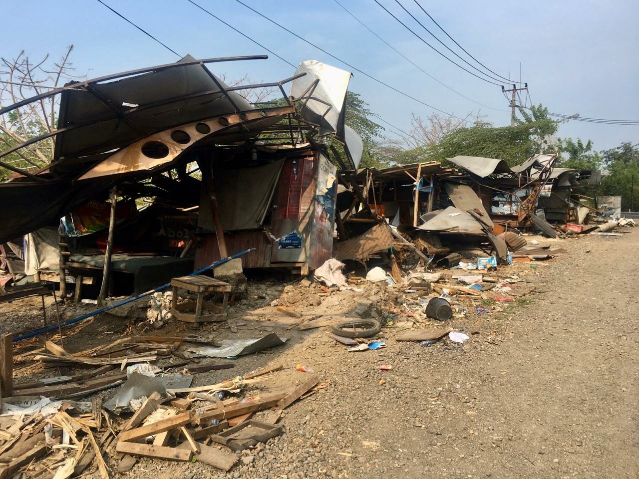 Setibanya di lokasi kejadian, di jalur yang menurun sepanjang sekira 100 meter, rem truk tersebut tidak berfungsi. Akibatnya, truk menabrak sejumlah warung penjual kelapa yang berada di seberang salah satu rumah makan di kawasan tersebut.
