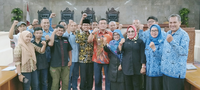 CIREBON, SC- DPRD Kota Cirebon menerima audiensi Konsulat Cabang Federasi Serikat Pekerja Metal Indonesia (KC FSPMI) Cirebon Raya di Griya Sawala Gedung DPRD, Jumat (29/11) Hadir dalam audiensi tersebut, anggota DPRD Kota Cirebon, R Endah Arisyanasakanti dan Hj Neneng Sri Daiyah, Walikota Cirebon, H Nashrudin Azis dan Kepala Dinas Tenaga Kerja Kota Cirebon, Agus Sukmanjaya.