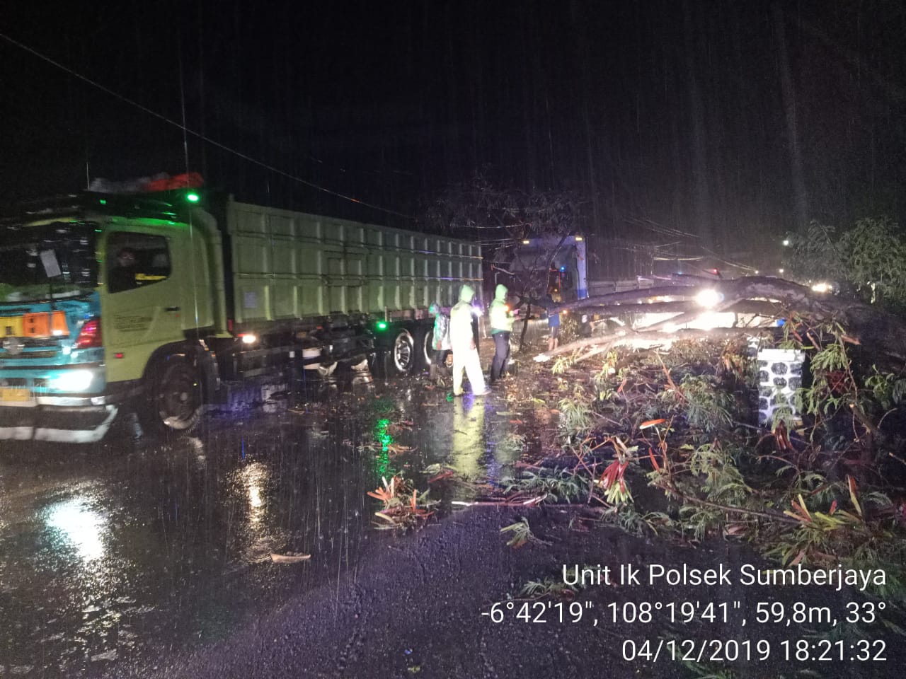 Pohon tumbang yang menutupi Jalan Raya Cirebon – Bandung di Desa Garawangi Kecamatan Sumberjaya tersebut tentunya sangat membahayakan pengguna jalan. Namun, saat kejadian tidak ada korban jiwa.