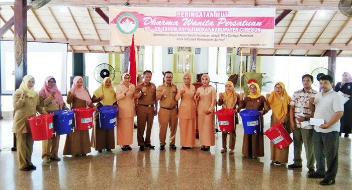 Ketua DWP Kabupaten Cirebon, Wiwi Rahmat, mengatakan, kontribusi DWP selama ini bisa menjadi bagian dalam membantu pembangunan, baik SDM maupun pembangunan fisik.”Oleh karenanya, dalam momentum peringatan HUT Dharma Wanita Persatuan ke-20 tahun 2019 tingkat Kabupaten Cirebon, kami mengangkat tema ‘Optimalisasi Kinerja Dharma Wanita Perempuan sebagai Mitra Strategis Pemerintah untuk Suksesnya Pembangunan Nasional’,” ujar Wiwi usai kegiatan kegiatan tersebut di Pendopo Bupati, Senin (9/12).