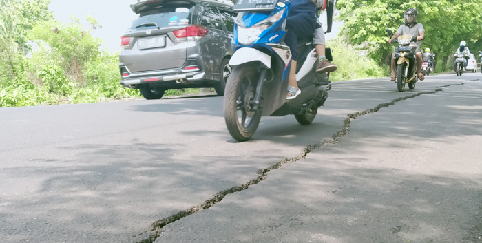 Menurutnya, rekahan Jalan Pilang Raya sudah cukup lama tampak. Hanya, beberapa titik menunjukkan perkembangan yang memprihatinkan karena keretakan semakin besar dan lebar.