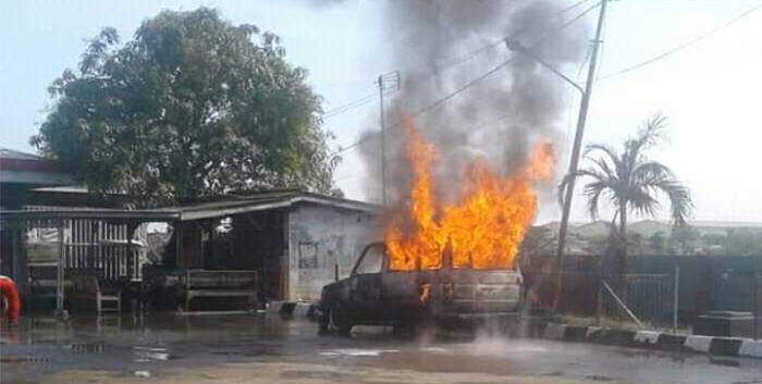INDRAMAYU, SC- Satu unit mobil Toyota Kijang Grand dengan Nomor Polisi E 1286 YL terbakar di area SPBU di Desa Jumbleng, Kecamatan Losarang, Kabupaten Indramayu, Rabu (18/12/3019) pagi sekitar pukul 09.00 wib. Diduga terbakarnya mobil berisi 5 derigen pertalit ini diakibatkan oleh percikan api dari rokok yang dihisap supir.