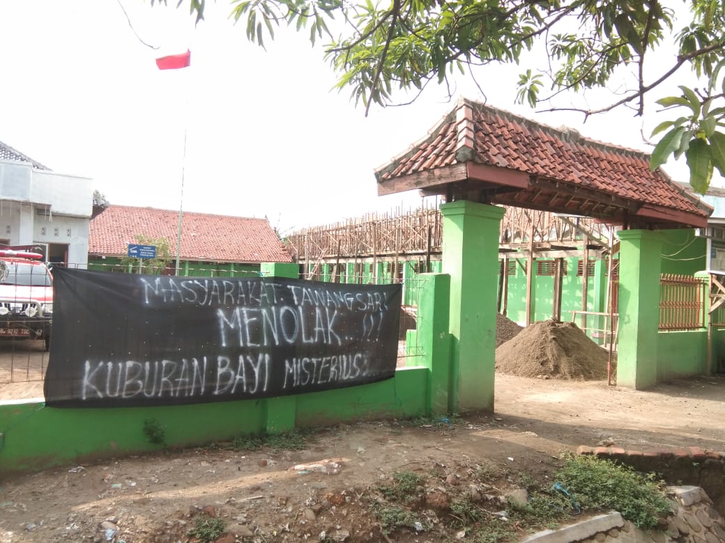 CIREBON, SC- Masyarakat Desa Tawangsari, Kecamatan Losari, Kabupaten Cirebon digegerkan dengan keberadaan kuburan bayi misterius di Tempat Pemakaman Umum (TPU) desa setempat. Bahkan, mereka memasang spanduk berisi penolakan terhadap kuburan tersebut, Jumat (3/1/2020).