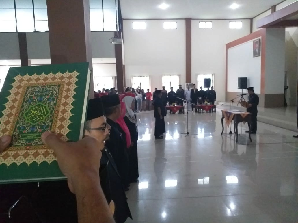 SUMBER, SC- Pemkab Cirebon menggelar pelantikan dan pengambilan sumpah pejabat fungsional lingkup pendidikan di Lingkungan Pemkab Cirebon. Bertempat di aula gedung Badan Kepegawaian dan Pemberdayaan Sumber Daya Manusia (BKPSDM) Rabu (8/1/2020), pelantikan dipimpin langsung Bupati Cirebon, Drs H Imron MAg.