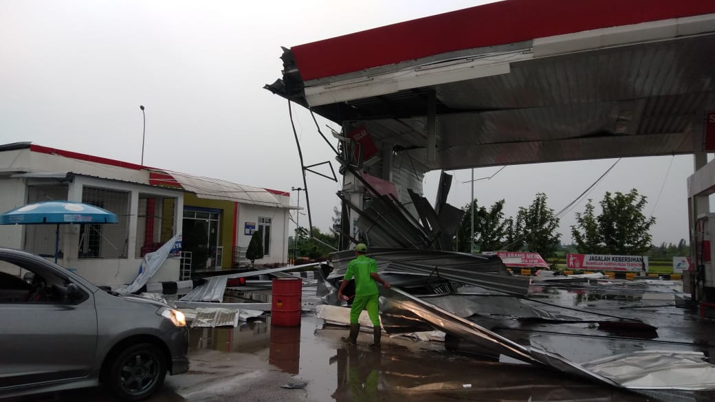 CIREBON, SC- Hujan deras disertai angin kencang yang terjadi di sekitar KM 166 ruas Tol Cipali arah Cirebon menyebabkan beberapa fasilitas PJU dan SPBU yang berada di rest area tidak berfungsi secara maksimal, Sabtu (11/1/2020) sekitar pukul 15:30 WIB.