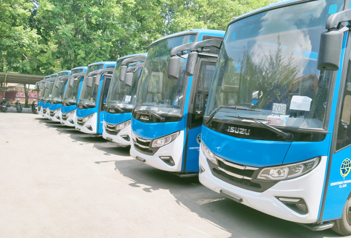 CIREBON, SC- Bus Rapid Transit (BRT) masih terparkir di halaman kantor Dinas Perhubungan (Dishub) Kota Cirebon. Sepuluh unit BRT tersebut direncanakan akan bisa dioperasikan pada awal tahun 2020, namun belum juga direalisasikan.