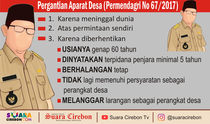 Dalam Permendagri tersebut dijelaskan, perangkat desa diberhentikan karena tiga sebab. Pertama karena meninggal dunia, kedua atas permintaan sendiri, dan ketiga karena diberhentikan.