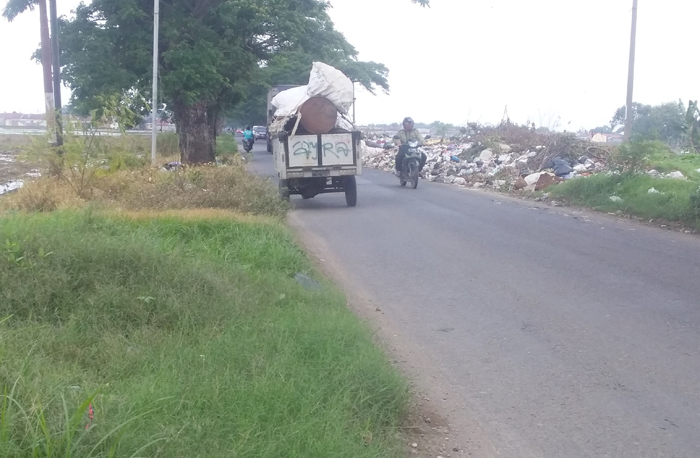 Sementara itu Bowo salah seorang pengguna jalan mengatakan, jika melintas di area tersebut sangat tak nyaman, selain sampah yang berserakan baunya sangat menyengat, sehingga harus menggunakan masker. (Yasir)