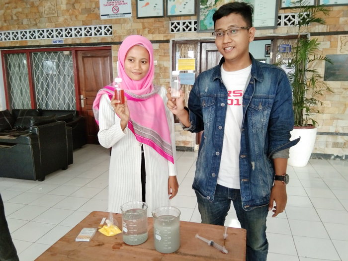 Bersama timnya, Suudul Falah mendemonstrasikan terobosannya itu dikantor Desa Bobos, Sabtu (18/1/2020). Dalam demonstrasi itu, proses pemisahan atau pengendapan debu pemotongan batu alam terbilang cukup mudah, hanya dengan meneteskan dua cairan yakni Koagulan 0,5 ml dan Flokulan 4 ml, air limbah batu alam sebanyak satu liter langsung menjadi jernih setelah diaduk sebelumnya. Debu hasil gergajian batu alam itu langsung mengendap kurang dari lima menit.