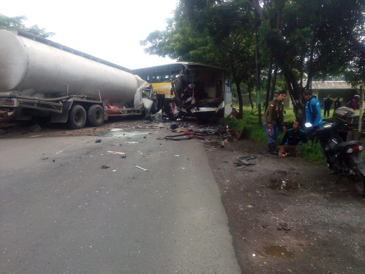 CIREBON, SC- Kecelakaan lalulintas yang melibatkan dua kendaraan besar antara mobil truk tangki dan mobil bis di Jalur Pantura, tepatnya di depan SPBU Gebang Kulon, Kecamatan Gebang, Kabupaten Cirebon mengakibatkan 7 orang mengalami luka-luka, Selasa (21/1/2020).