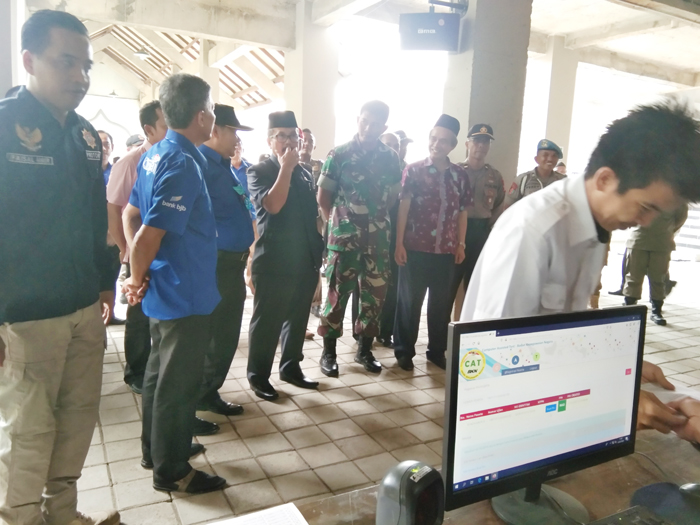 SUMBER, SC- Bupati Cirebon, H Imron MAg meninjau pelaksanaan Seleksi Kompetensi Dasar (SKD) CPNS dari Kabupaten Cirebon di gedung Kampus II UMC Kabupaten Cirebon, Sabtu (15/2). Setelah berkeliling melihat tempat seleksi, bupati menilai pelaksanaan seleksi tahun ini lebih baik.
