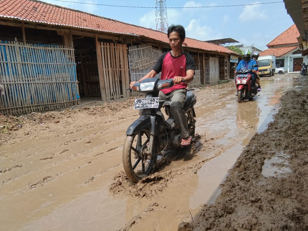 Jalan tersebut justru diurug menggunakan batu kerikil yang bercampur tanah. Sehingga ketika terkena hujan kondisi jalan menjadi seperti sawah yang baru dibajak.