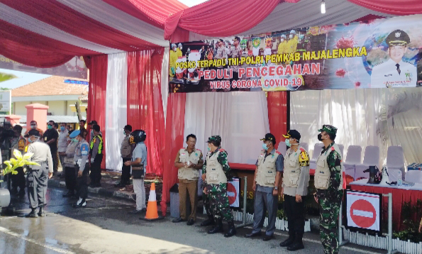 MAJALENGKA, SC- Polres Majalengka bersama Pemerintah Kabupaten Majalengka menyediakan Posko Terpadu TNI Polri untuk antipisai penyebaran Covid -19 di beberapa titik fasilitas umum. Posko tersebut berada di Jalan Protokol KH Abdul Halim, di depan Toserba Yogja Majalengka, juga di perbatasan Majalengka Bandung – Cirebon tepatnya di Kecamatan Kadipaten.