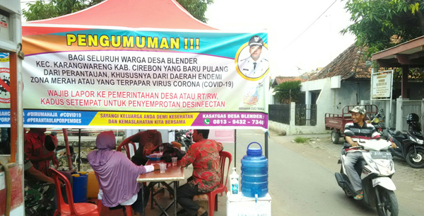KARANGWARENG, SC- Berbagai upaya untuk menanggulangi semakin merebaknya virus Corona terus dilakukan. Salah satunya sebagaimana yang dilakukan Pemerintahan Desa Blender, Kecamatan Karangwareng, Kabupaten Cirebon.