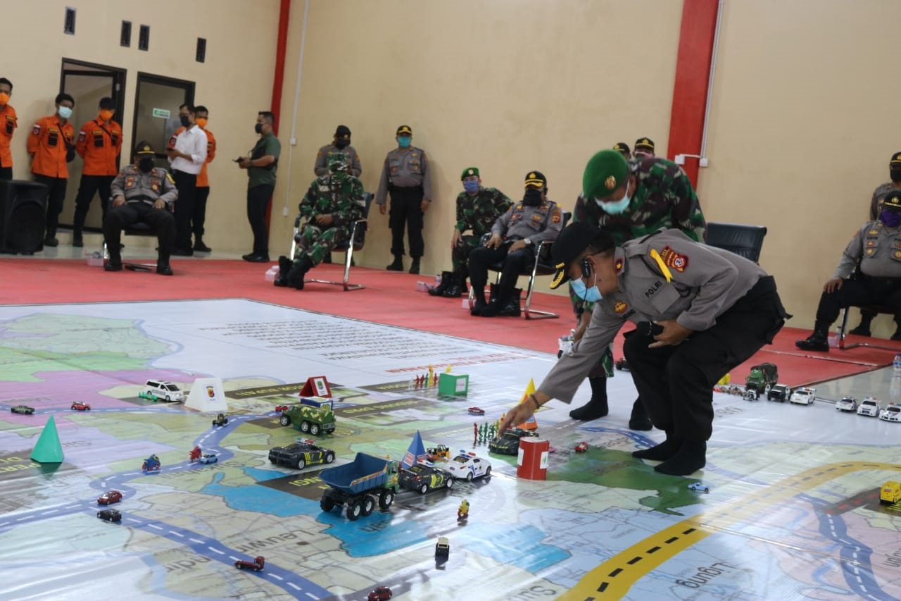 MAJALENGKA, SC- Polres Majalengka menyiapkan strategi jangka panjang untuk menghadapi pandemi virus Corona dengan menggelar Rapat Koordinasi (Rakor) Tactical Floor Game (TFG) Sispam Kota Kotijensi dalam Rangka Antisipasi Dampak Keamanan dari Kebijakan Pemerintah PP NO 21 TAHUN 2020 tentang Pembatasan Sosial Berskala Besar (PSBB) di Gedung Serba Guna Sarja Arya Racana, Polres Majalengka, Senin (6/4/2020).