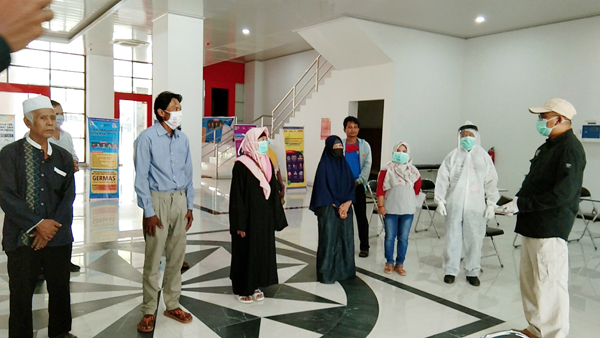 SUMBER, SC- Dua dari lima orang Pekerja Migran Indonesia (PMI) asal Kabupaten Cirebon, tiba pada Jumat (10/4) pagi pukul 10.15 WIB. Tim Gugus Tugas Percepatan Penanganan Covid-19 Kabupaten Cirebon langsung mengarahkan mereka untuk menjalani sejumlah pemeriksaan medis dan rapid tes di Covid Center Watubelah, Sumber.