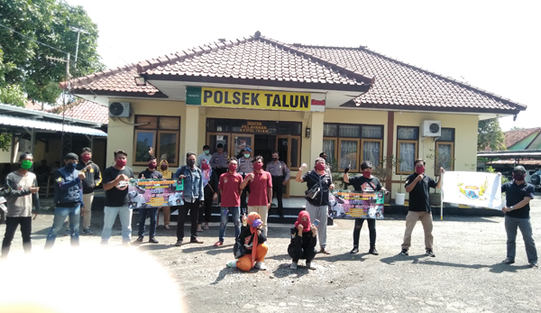 CIREBON, SC- Forum Kerukunan Orang Cirebon (Forkoci) mengelar kegiatan bakti sosial dengan membagikan masker kepada pengendara motor dan mobil yang melintas di Jalan Talun depan Kapolsek Talun, Kabupaten Cirebon, Senin (13/4/2020).