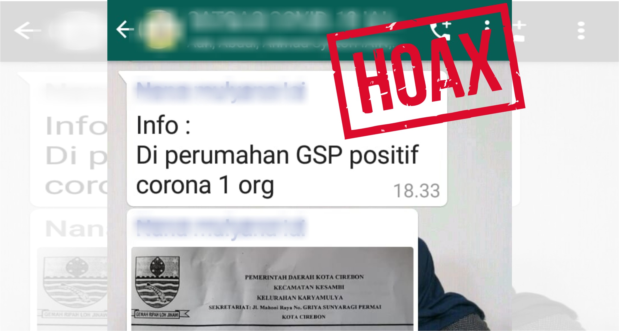 Ketika disinggung mengenai penutupan atau karantina wilayah ini akibat adanya warga perumahan tersebut yang terpapar Covid-19, Pipih langsung menepisnya. “Kabar itu bohong alias hoax, tidak benar, bahwa warga kami ada yang terkena virus itu (Covid-19). Penutupan jalur utama atau karantina wilayah yang terjadi di perumahan ini atas dasar inisiatif kami dari masing-masing Ketua RW yang ada di lingkungan Perumahan GSP untuk antisipasi semakin menyebarnya virus Covid19 di Kota Cirebon,” imbuhnya.