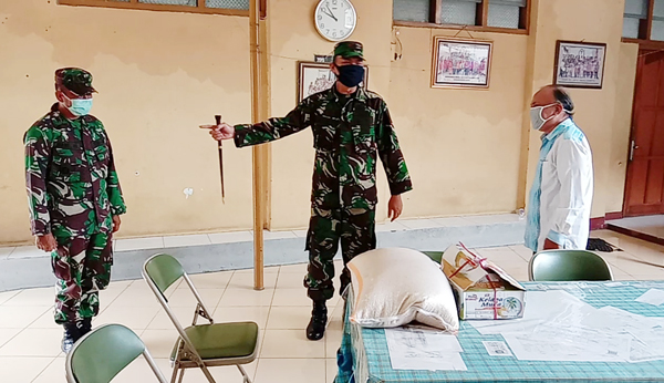 MAJALENGKA, SC- Dandim 0617 Majalengka, Letkol Inf. Harry Subarkah, PSC. M. Sc, secara pribadi mendatangi tokoh agama non muslim yakni Pendeta Yessy Yehezkiel Timotius Pande Iroot, STh. M. Div., untuk berbagi sembako yang bertempat di Gereja Pantekosta Indonesia Elshadday Kadipaten, Selasa (28/4/2020). “Kegiatan sosial pembagian sembako yang dilaksanakan jajaran TNI ini untuk membantu meringankan beban tokoh agama pada situasi pandemi Covid-19 ini,” kata Dandim.