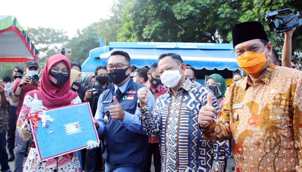 INDRAMAYU, SC- Kunjungan Menteri Dalam Negeri (Mendagri) Tito Karnavian dalam acara launching Gerakan Sejuta Masker dan Rakor Pilkada 2020 berbuah manis. Pasalnya, secara spontan mantan Kapolri itu memberikan 1 unit mesin Anjungan Dukcapil Mandiri (ADM) yang biasa disebut oleh orang awan sebagai “ATM KTP” kepada Pemkab Indramayu untuk mempercepat pembuatan KTP.
