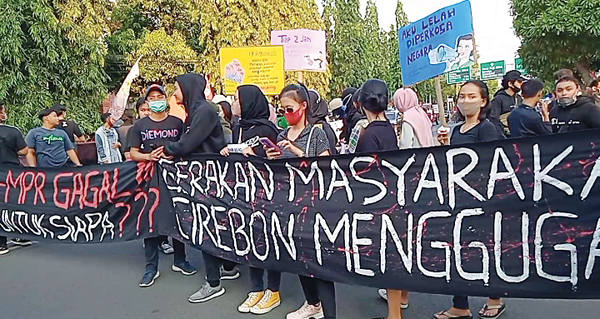 KOTA CIREBON, SC- Masih dalam suasana Hari Ulang Tahun (HUT) ke-75 Republik Indonesi (RI), puluhan mahasiswa yang tergabung dala Gerakan Masyarakat Cirebon Menggugat (GMCM) menggelar aksi refleksi di depan Balai Kota Cirebon, Jalan Siliwangi, Selasa (18/8/2020).