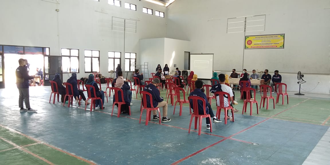 KABUPATEN CIREBON, SC- Kuliah Kerja Mahasiswa (KKM) Universitas Muhammadiyah Cirebon (UMC) menyelenggarakan seminar di GOR Desa Karangsari, Kecamatan Weru, Kabupaten Cirebon, Sabtu (22/8/2020).