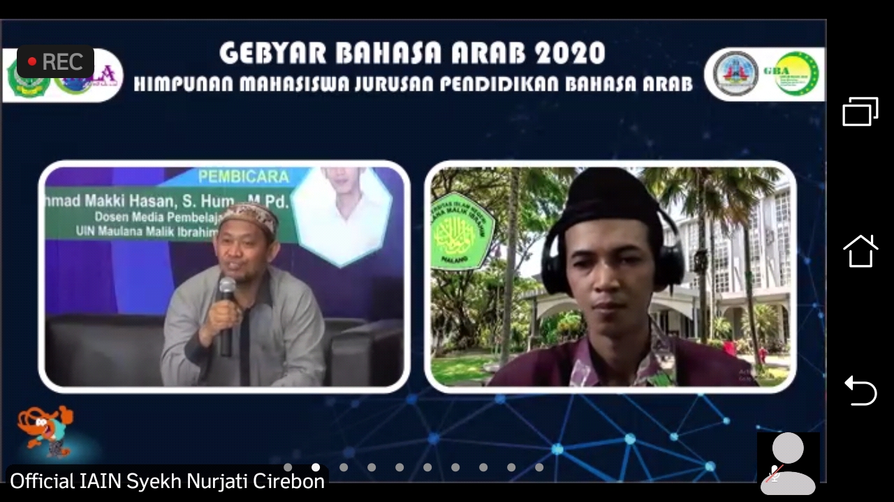 CIREBON, SC- Himpunan Mahasiswa Jurusan (HMJ) Pendidikan Bahasa Arab (PBA) Institut Agama Islam Negeri (IAIN) Syekh Nurjati Cirebon menggelar Gebyar Bahasa Arab 2020 dengan mengundang pembicara Ahmad Makki Hasan. Pada kajian bahasa ini, diskusi hangat muncul di tengah tarikan revolusi industri 4.0 yang memaksa satu sisi pada penguasaan teknologi.