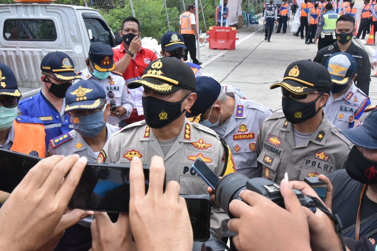 Terkait hal tersebut, kendaraan besar dari arah Jawa Tengah menuju Jakarta dikeluarkan dari tol di Gerbang Tol (GT) Palimanan 4 ke jalur arteri Pantura. Hal itu dikemukakan Kapolresta Cirebon, Kombes Pol M. Syahduddi saat memimpin kegiatan penyekatan kendaraan besar di GT Palimanan 4 Tol Palikanci, Sabtu (31/10/2020).