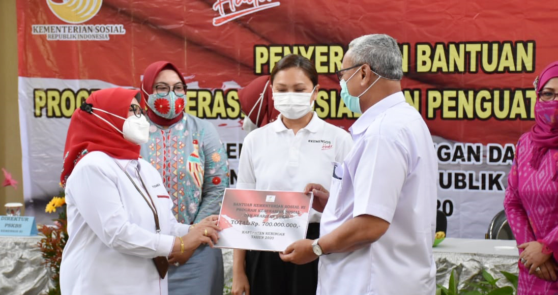 Dalam suasana Pandemi Covid-19, Kabupaten Kuningan menjadi salah satu kabupaten yang mendapat perhatian dari Kemensos RI dalam rangka penanganan dampak sosial di masyarakat pada masa pandemi.