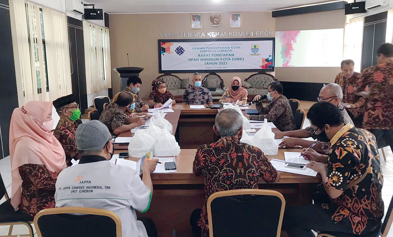 KOTA CIREBON, SC– Upah Minimum Kota/Kabupaten (UMK) Kota Cirebon tahun 2021 diputuskan naik 1,44 persen. Keputusan naiknya UMK itu disepakati dalam rapat pleno yang digelar Dewan Pengupahan Kota (DPK) Cirebon di Kantor Dinas Ketenagakerjaan (Disnaker) setempat, Kamis (5/11/2020).