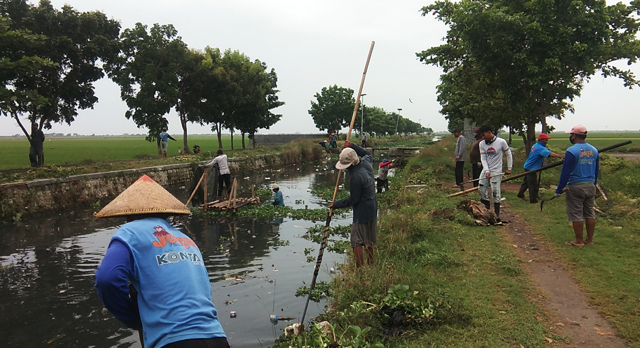 Kegiatan kerja bakti bersama masyarakat disambut atusias masyarakat dan lembaga desa , maupun para petani yang melakukan kepedulian terhadap lingkungan. (Kirno)