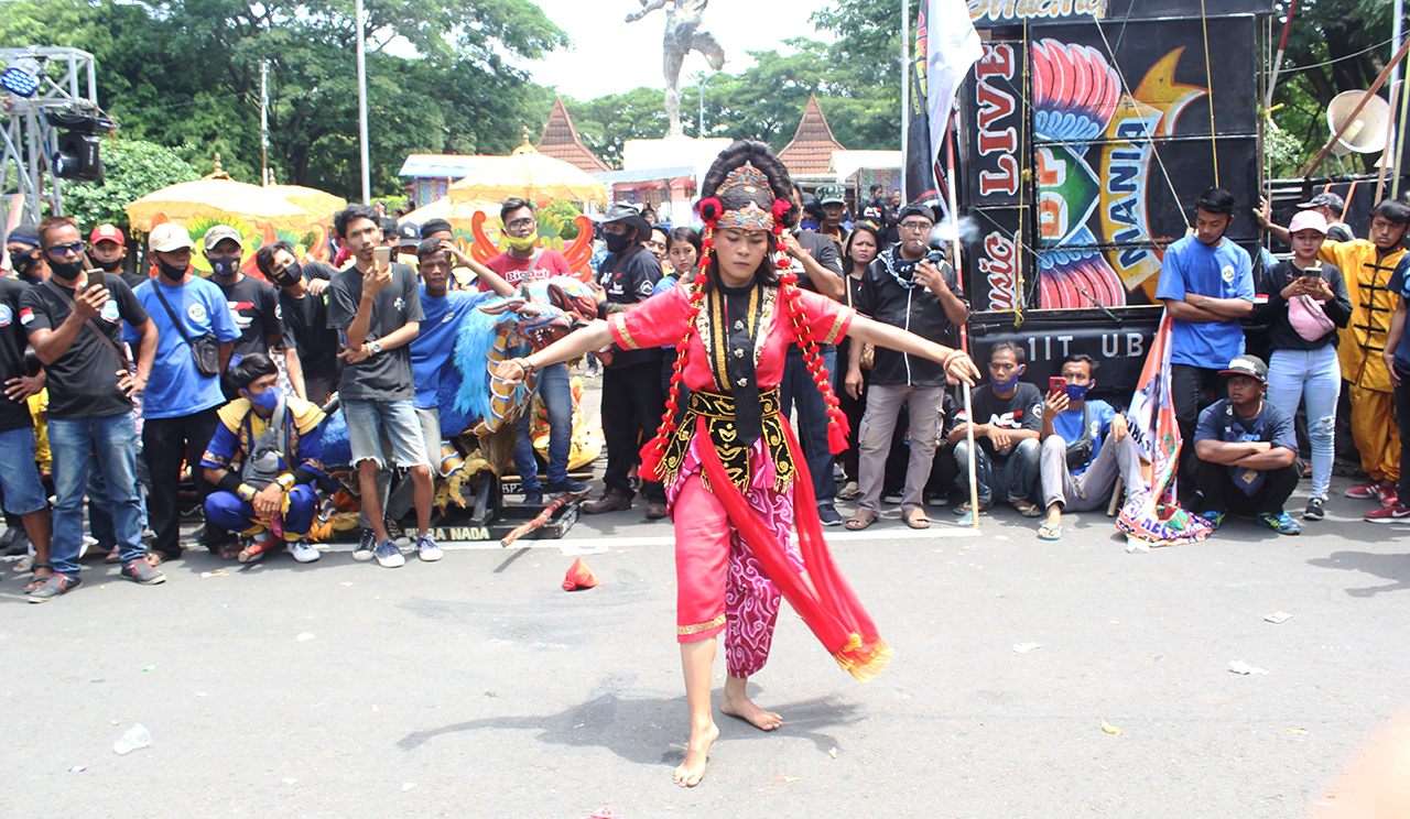 Dalam unjuk rasa itu, para seniman menampilkan berbagai macam kesenian di antaranya tari topeng dan burok dengan iringan musik keras. (Joni)
