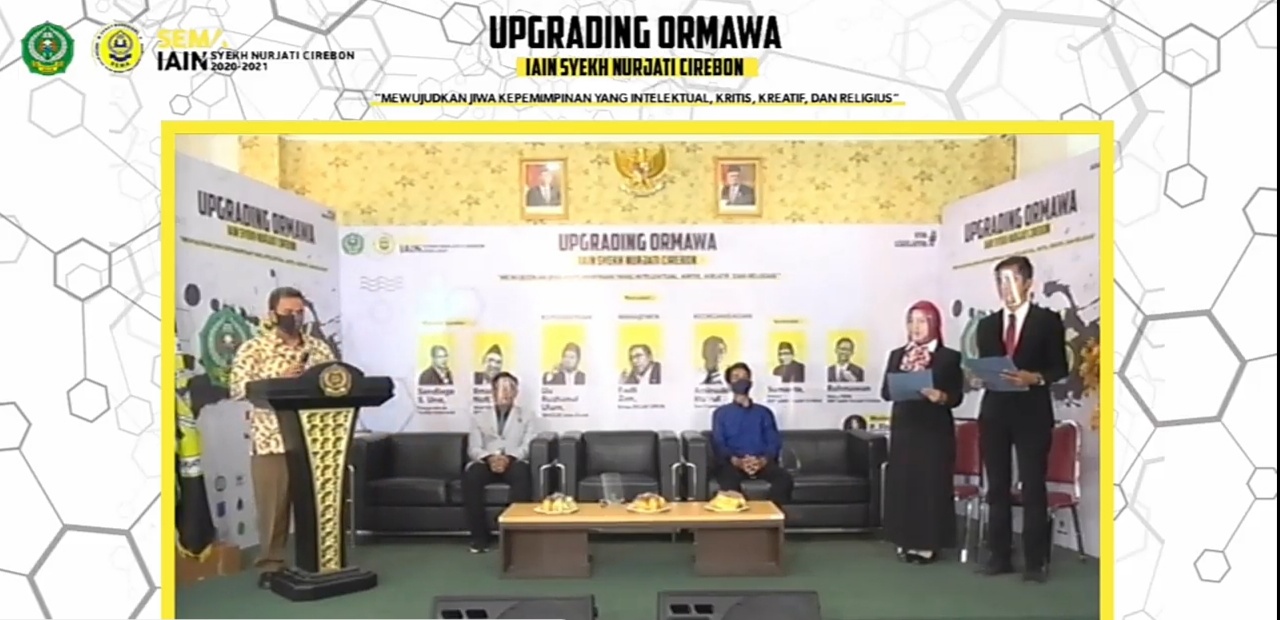 CIREBON, SC- Senat Mahasiswa (Sema) Institut Agama Islam Negeri (IAIN) Syekh Nurjati Cirebon menyelenggarakan Upgrading Organisasi Kemahasiswaan (Ormawa) secara online bertema “Mewujudkan Jiwa Kepemimpinan yang Intelektual, Kritis, Kreatif, dan Religius” secara onlinen, Senin (9/11/2020).