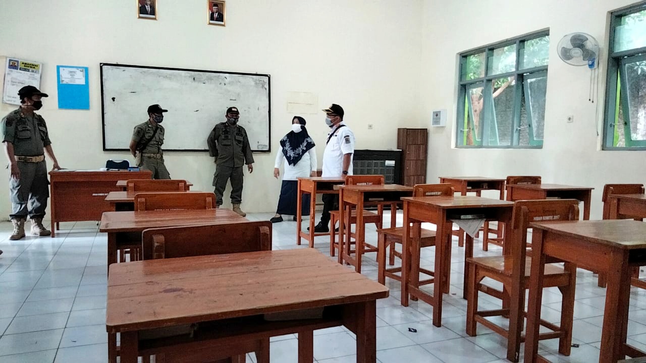 SUMBER, SC- Satgas Penanganan Covid-19 Kabupaten Cirebon bidang penegakan dan penindakan hukum Protokol kesehatan (Prokes) melakukan inspeksi mendadak (Sidak) ke SMPN I Sumber, Rabu (18/11/2020). Sidak dilakukan guna memastikan tidak adanya proses Kegiatan Belajar Mengajar (KBM) tatap muka di sekolah yang berada di wilayah dengan kategori zona merah.